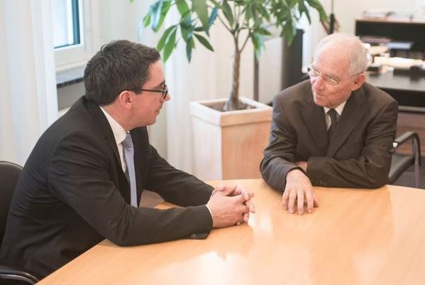 Der CDU-Bundestagskandidat Stefan Rouenhoff traf den Bundesminister der Finanzen, Wolfgang Schäuble zu einem Meinungsaustausch in Berlin. Bundesminister Wolfgang Schäuble ist 1972 Bundestagsabgeordneter und gehört damit seit 44 Jahren dem Deutschen Bundestag an. Er ist damit der dienstälteste Bundestagsabgeordnete in der Geschichte der Bundesrepublik Deutschland.