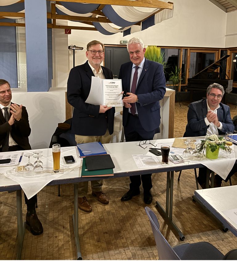 Der Kreisvorstand der CDU traf sich zu einer Sitzung in Uedem. Im Rahmen der Sitzung ehrte der CDU-Kreisvorsitzende Dr. Günther Bergmann MdL den Kreisgeschäftsführer der CDU, Manfred Lorenz, für seine 40jährige Mitgliedschaft in der CDU. Er dankte ihm für sein langjähriges Engagement in der Partei.