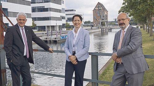 Die Landratskandidatin Silke Gorißen, der Bürgermeisterkandidat für Kleve, Wolfgang Gebing, und der CDU-Kreisvorsitzende Dr. Günther Bergmann trafen sich zum Informationsaustausch am Klever Campus.